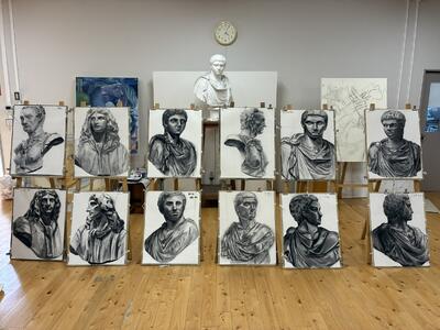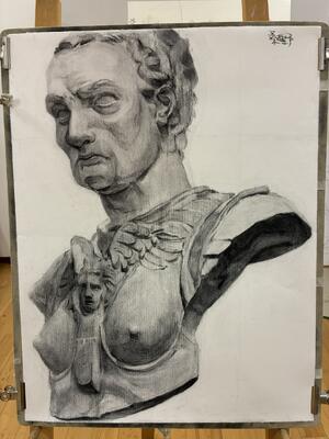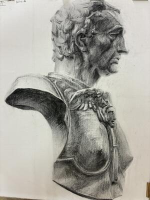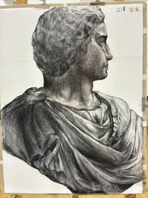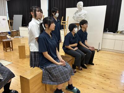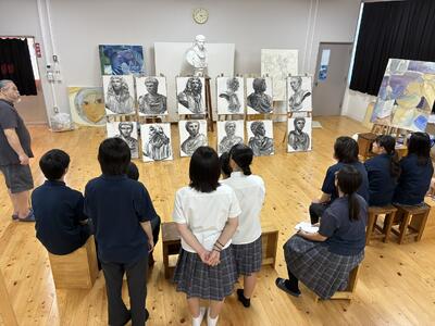 9時スタート!!1年生には、「胸像」を描くのが初めてという生徒もいます。