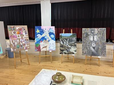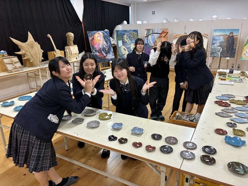 油彩画、水彩画、陶芸、デザイン、立体、デッサン等の作品制作をしています。基礎から始め、専門的な知識や技術まで深く学び、国公立、私立の美大や就職、専門学校と幅広い進路選択ができるような表現力を身につけます!絵を描くのが好きな人、将来クリエイティブな職業につきたい人は是非、岱志高校美術部へ!!