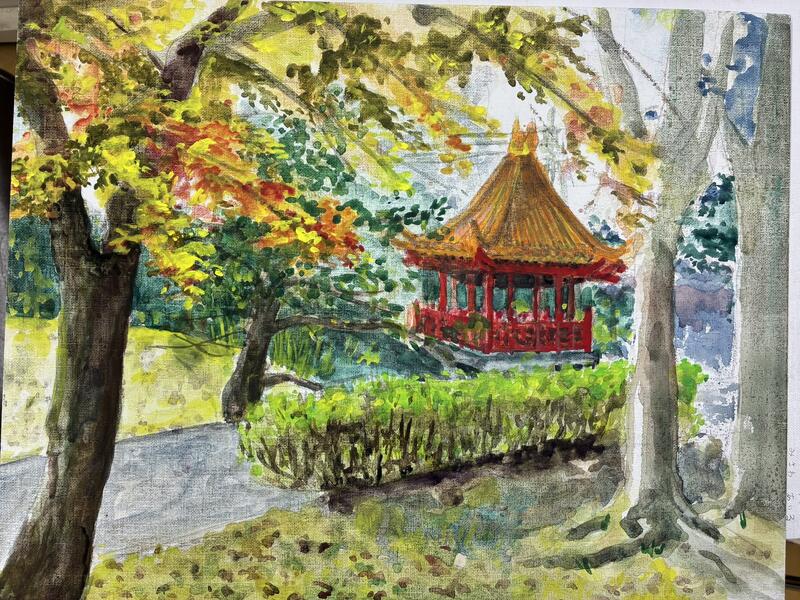 秋晴れの素晴らしい天気に恵まれ、その中で一日絵に没頭できて、幸せな時間を過ごすことができました。