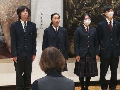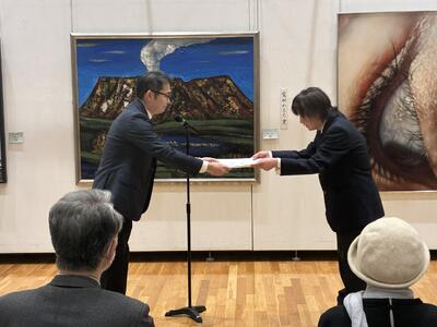 11/29(土)熊本県立美術館分館にて『くまもと「描く力」2025』 表彰式が開催され、<優秀賞>を受賞した本校美術部1年生 ウチノ シノブさんが、参加しました。