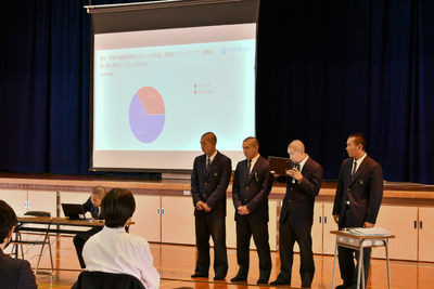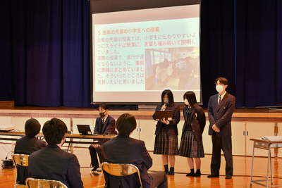 2年生による「総合的な探究の時間」校内発表会が行われました。10のグループが、1年かけて取り組んできた探究活動について、テーマ設定から調査・実践に至るまでのプロセスや成果、課題を発表しました。長期にわたり試行錯誤を重ねてきたからこそ、一つ一つの言葉に説得力があり、課題と真摯に向き合ってきた姿勢が伝わる発表となりました。