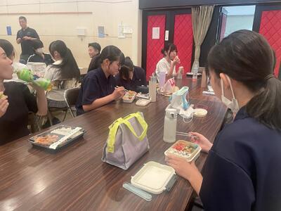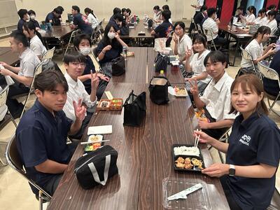 体育館ではバレーボールを通じて生徒同士の交流を深めた後、地元の食材を使った夕食を楽しみました。