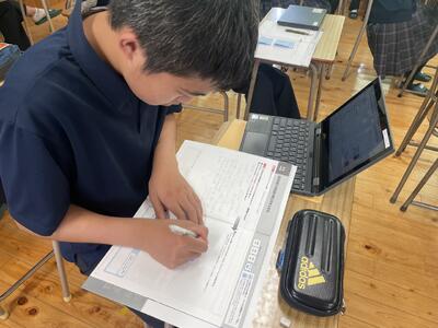 その人物が行った実験の内容をまとめるという課題でした。生徒たちは黙々と取り組んでいました!