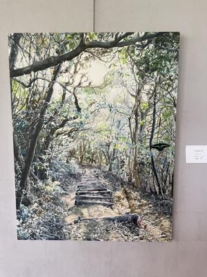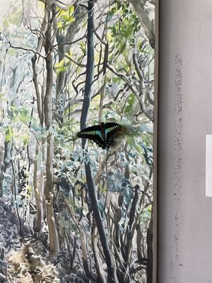 小岱山をテーマに描いた作品の中に、よく見ると、綺麗な蝶蝶がとまっていました!