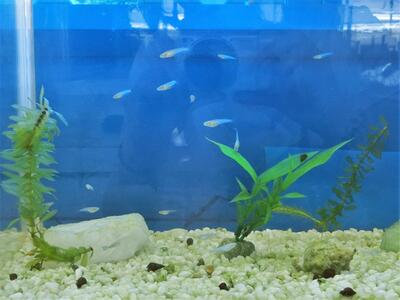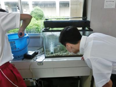 5月に理科部が近くの水路で捕まえて、生物室で飼育していたメダカが先週から産卵を始めました。