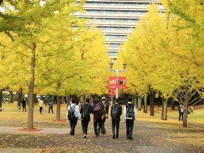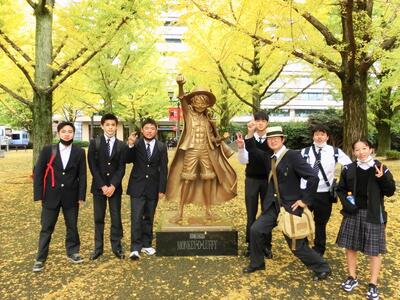 熊本県庁はイチョウが見頃で、ルフィ像前は絶好の撮影スポットでした。
