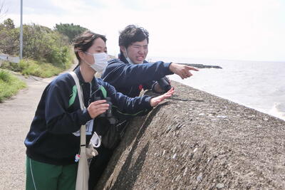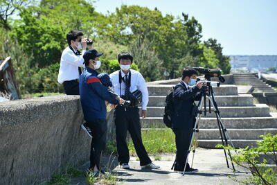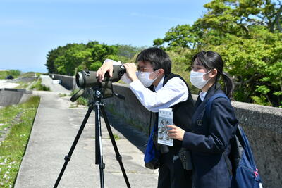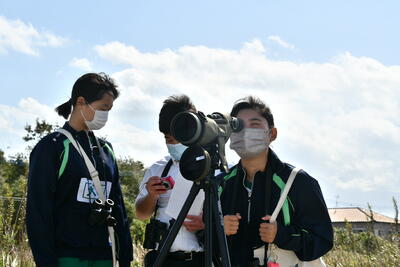 4月30日土曜日、新入部員と初めての野外活動で理科部が荒尾干潟で春の渡り鳥の観察を行いました。