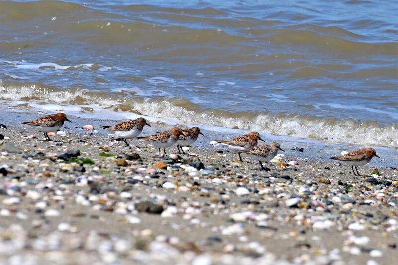 秋の渡りは春のように多くないので、広い干潟に点々といる小さな鳥を歩いて探します。