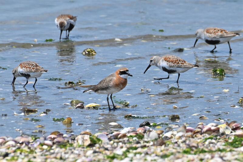 メダイチドリ(中央)とハマシギ