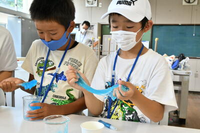 理科では「ふわもち!?スライム研究会」と「学べ!干潟生き物クイズ&自分だけのアンモナイトを作ろう!」、2つの体験を実施しました。