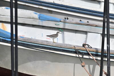 係留してある船にキアシシギを1羽見つけました。