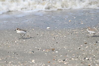 波打ち際にも小さなチドリ類がトコトコ走っていました。左がメダイチドリ右がシロチドリです。