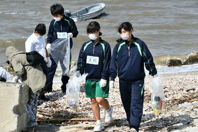 野鳥観察の後はみんなで海岸のごみ拾いです。