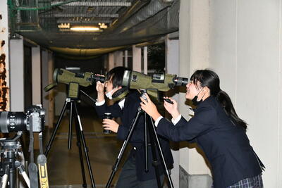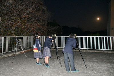 生徒たちは「ぎゃんキレイ」と美しい月を一緒に眺めながら一夜限りの天体ショーを楽しみました。