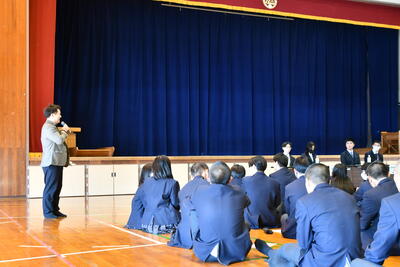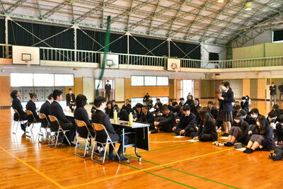 最後に3学年主任から、3年間の学校生活の中で努力を重ねながら成長していった先輩たちの姿が紹介され、「一歩踏み出す勇気を持ってほしい」と在校生へメッセージが送られました。先輩たちがかけてきた時間が、言葉の重みとなって伝わる講演会となりました。