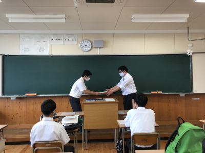 新型コロナウイルス感染症対策のため、在校生が参加できない状況の中、在校生代表として立派に送辞を述べました。