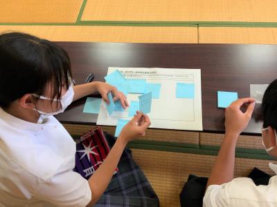 2学年の総合的な探究の時間で『労働の意義を考える』という授業を行いました。ガン終末期患者に寄り添う看護師の姿をDVDで鑑賞した後、労働の意義についての考えを出し合うグループワークを行いました。「お金を稼ぐ」だけではない労働の意義、人と寄り添うことの大切さをより深く考えました。