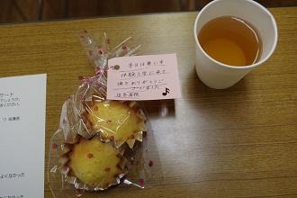 家庭クラブからのマドレーヌと飲み物のおもてなしです。