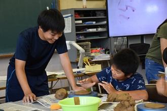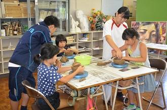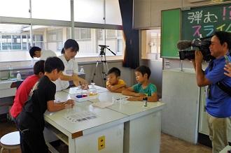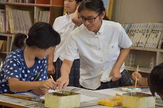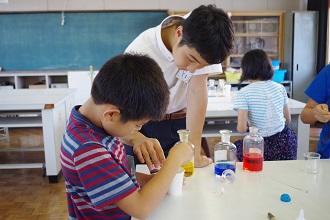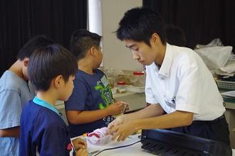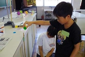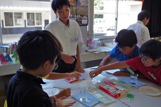 荒尾市内の小学4~6年生を対象に高校生が先生となり、美術と理科の体験学習を行います。