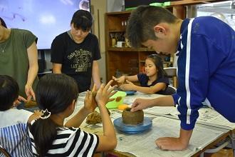 美術では缶バッジ作成と陶芸体験を行いました。