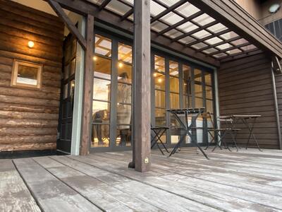 入り口は、山小屋風の外観でいい雰囲気。 入り口は、カフェになっていておいしそうなコーヒーの香りに包まれていました。