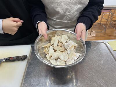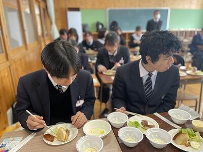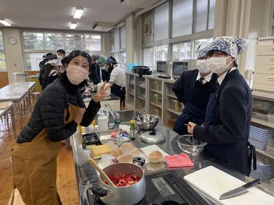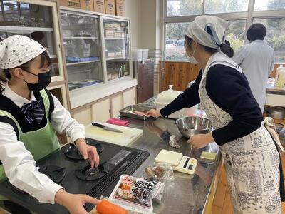 2月17日は菊池高校で両校の生徒が考えたメニューをもとに試作品を作成しました(試作班)!!