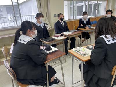 助言者を荒尾市役所総務部総合政策課と荒尾市教育委員会からお招きし、今年度の探究活動へのご助言をいただきました。
