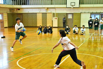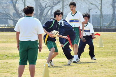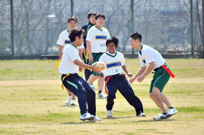 1年生の体育の授業ではタグラグビーで汗を流していました