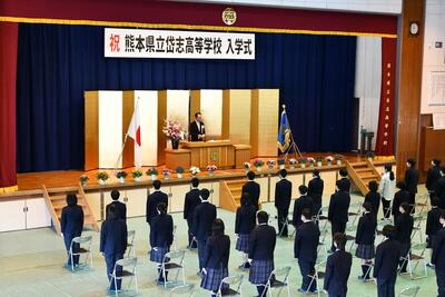 晴天に恵まれ、暖かな春の日差しの中、第8回岱志高等学校入学式が挙行されました。