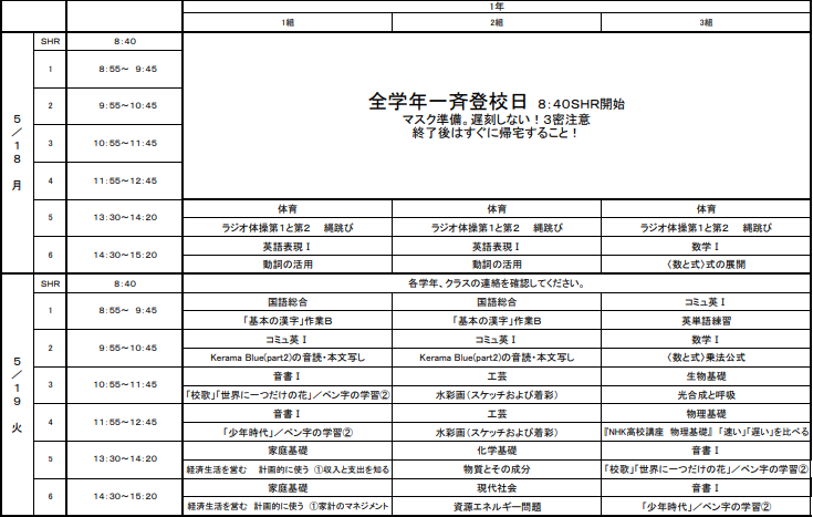 以下のボタンから学習計画表(各教科の詳しい課題一覧)