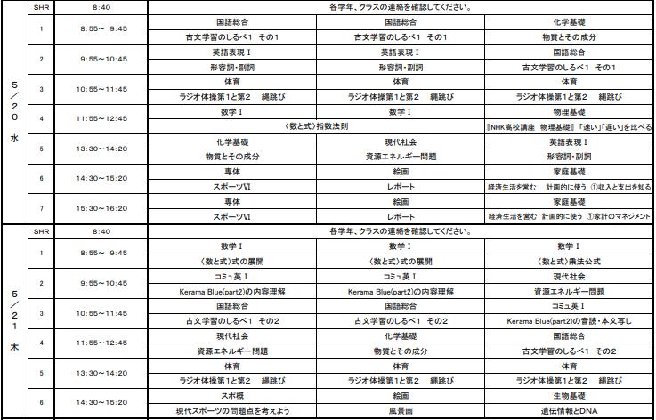 教科からの連絡