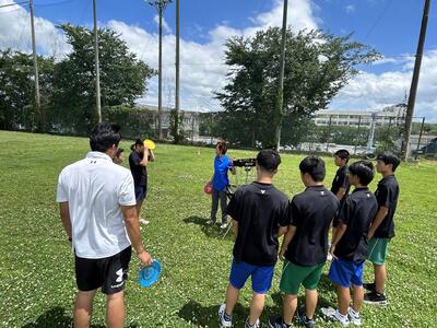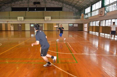 6月6日の専攻体育から3週にわたり講師としてYMCAの横田先生をお招きしニュースポーツの授業を開始しました。6日の授業ではアルティメットに挑戦し、様々な投げ方やカーブのかけ方などの基礎を習った後、ドリル練習を行いました。多くの先生方にも参加していただき生徒達と一緒に楽しんでいました。最後のアルティメットのゲームでは、ほとんどが初めての生徒でしたが白熱した戦いが繰り広げられました。次回のニュースポーツも楽しみです。
