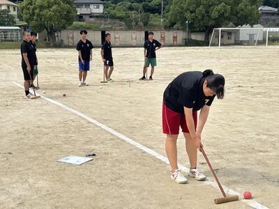 本日の専攻体育の授業では、ニュースポーツの1つである『ゲートボール』を行いました。