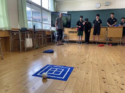 本校主催の授業では「ボッチャ」をするため、その練習をしていました!