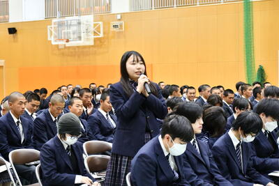 最後に3学年主任から、3年間の学校生活の中で努力を重ねながら成長していった先輩たちの姿が紹介され、「一歩踏み出す勇気を持ってほしい」と在校生へメッセージが送られました。先輩たちがかけてきた時間が、言葉の重みとなって伝わる講演会となりました。