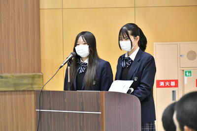 在校生送辞では、卒業生とのかけがえのない日々を振り返りながら、先輩方が築いてこられた伝統や思いを受け継いでいく決意が力強く述べられました。