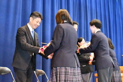 式では先生方から、「出会えた縁を大切に、これからも頑張ってください」といった言葉をはじめ、温かいメッセージが送られました。また、「掃除やボランティア、片付けなど、周りが見える人になってほしい」「自分自身を大切にしてほしい」といった言葉には、これから先の私たちを思う深い願いが込められていました。