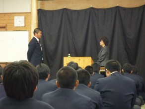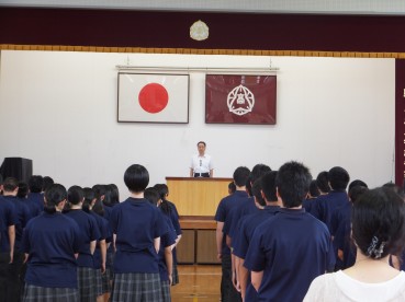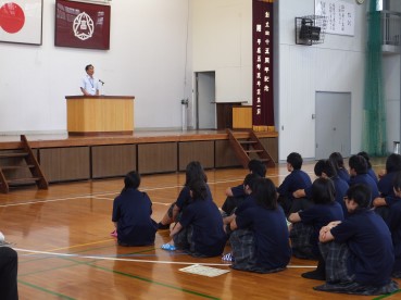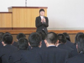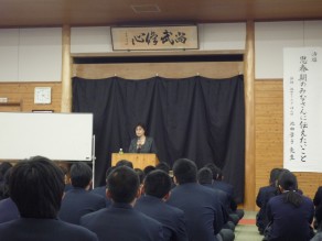 それぞれ具体的な話しを交えながら生徒へ伝えられました。また最後に道徳的な話しとして『道をゆずった母と娘』についての話しをされ、どう考えるかという投げかけをされ生徒職員ともに考えさせられる時間となりました。