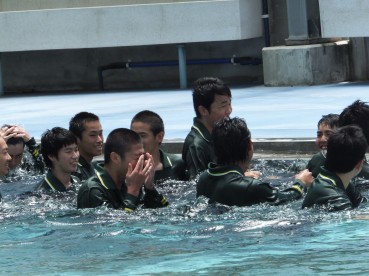 梅雨明け間近の晴天の中、恒例の着衣水泳を行いました。