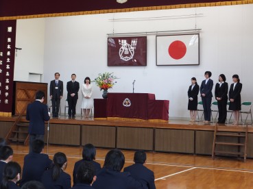 この度の定期人事異動により、本校を転任・退任される先生方を送る退任式が行われました。今年度は7名の先生が異動となりました。それぞれの赴任地でご活躍されることを本校生徒・職員一同祈念しています。ありがとうございました。