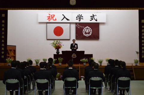 午後からは入学式が執り行われました。新入生27名は新しい制服に身を包み、希望と緊張の表情を浮かべつつ、高校生活への決意を新たにしていました。多くの御来賓の御臨席のもと、高森町内の地域の方々の御支援を受けたことに感謝し、高森校生としての学生生活をスタートしました。