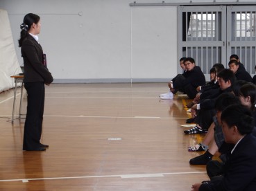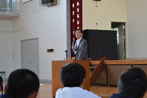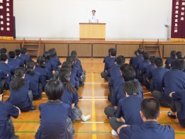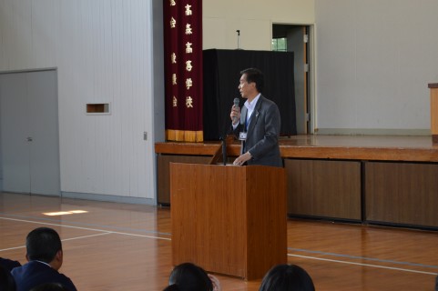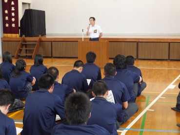 それぞれ具体的な話しを交えながら生徒へ伝えられました。また最後に道徳的な話しとして『道をゆずった母と娘』についての話しをされ、どう考えるかという投げかけをされ生徒職員ともに考えさせられる時間となりました。