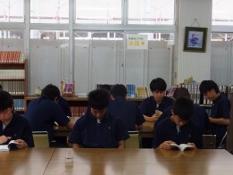 本校では朝読書に取り組んでいるなかで、今回の「図書館で朝読書」は年2回実施しています。充実した読書環境での読書習慣の定着を図り本への興味を持たせることを目的としています。朝の読書の時間には各自席に座り、読書に親しんでいました。