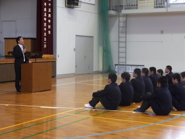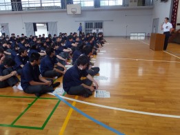 全校終礼とは、新たに本校に赴任された先生方の経験や考えを語ることで、生徒自身に人間としての在り方・生き方を考えてもらうことを目的として毎年行っているものです。