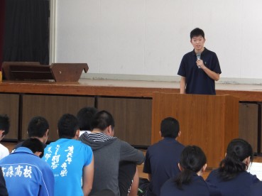 高校野球熊本県大会に出場する野球部の選手激励会を行いました。選手の紹介とそれぞれの選手が試合に対する意気込みを語りました。