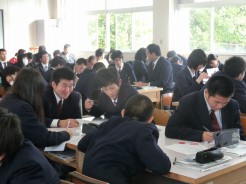 11月6日、1年生の生物と2年生の現代社会で授業研究会を行いました。
