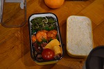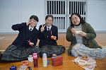 体育館で生徒全員が集まり、各クラスでお弁当を食べました。