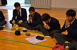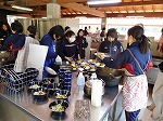 結成式後はお弁当の時間です。この日は生徒も先生方もお弁当を作り、各部活に分かれてお弁当を食べました。