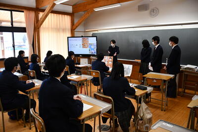 3年生による進路講話が行われました。1,2年生は、国公立大学、私立大学、専門学校、就職のコースの中から、希望の部屋に分かれて講話を聞きました。講話をしてくれた3年生たちは、受験で大切なことを実体験をとおして分かりやすく説明してくれました。