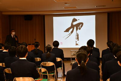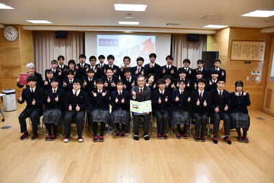 3年生に校長先生が授業をされました。卒業して新しい環境で頑張っていく3年生のために、生きる上で大切な考え方を熱く語られました。授業後、サプライズで全校生徒から3年間の感謝の気持ちを込めて寄せ書きをプレゼントしました。